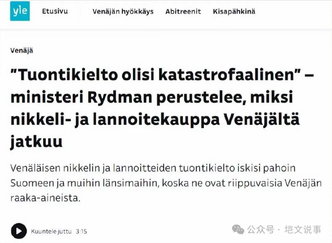 事实上,尽管欧盟试图通过经济制裁来削弱俄罗斯在欧盟市场的地位,但现实却是残酷的。毕竟,在这个全球化的时代,完全切断与俄罗斯的经济联系几乎是不可能的。就像芬兰经济部长威勒·莱德曼所说:“对俄罗斯的进口禁令将是灾难性的。好的制裁应该针对制裁对象,而不是制裁实施者。否则,芬兰和欧洲将承受比俄罗斯更大的损失。”目前,芬兰仍在从俄罗斯进口化肥和镍等关键物资。