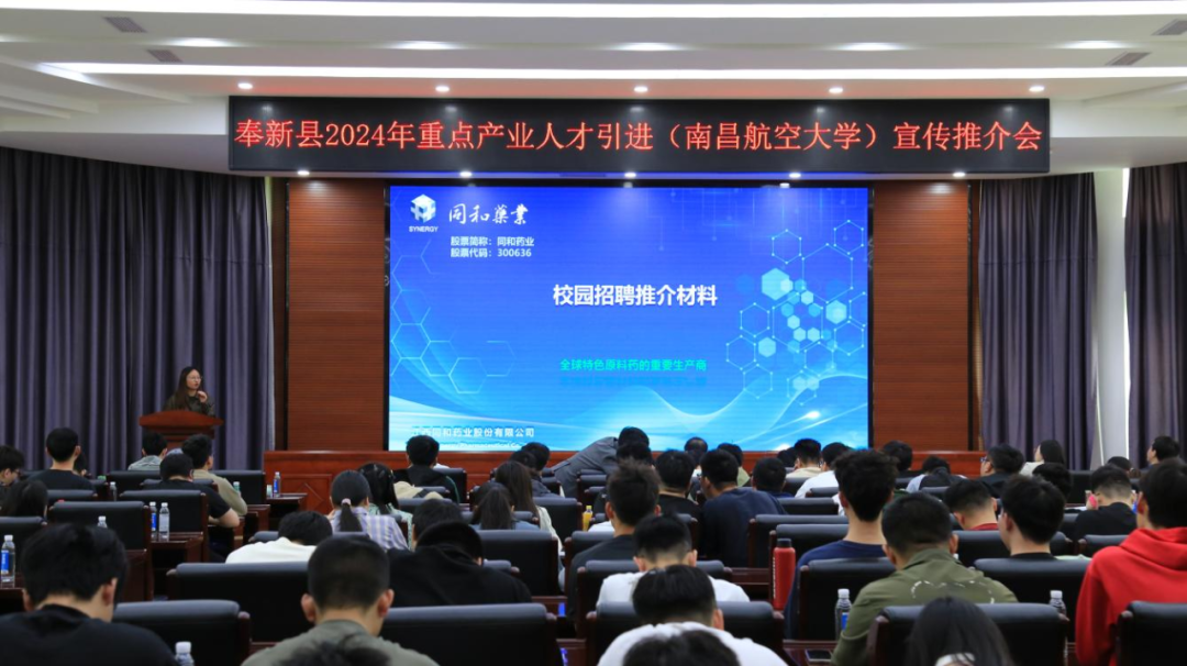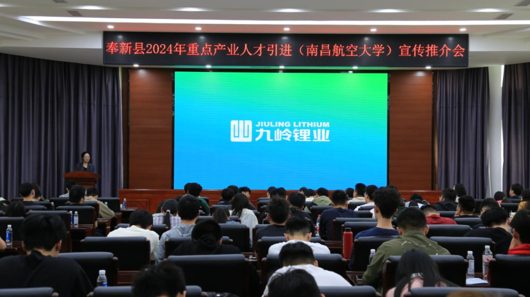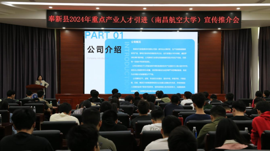 推介会上,南昌航空大学党委常委、副校长熊震宇致辞,奉新县委常委、县委组织部部长严钰对奉新经济社会发展情况、人才政策情况进行了宣传推介,并为奉新县驻南昌航空大学招才引智工作站授牌;奉新时代、九岭锂业、同和药业等企业进行现场推介,吸引了南航众多学子热情参与。