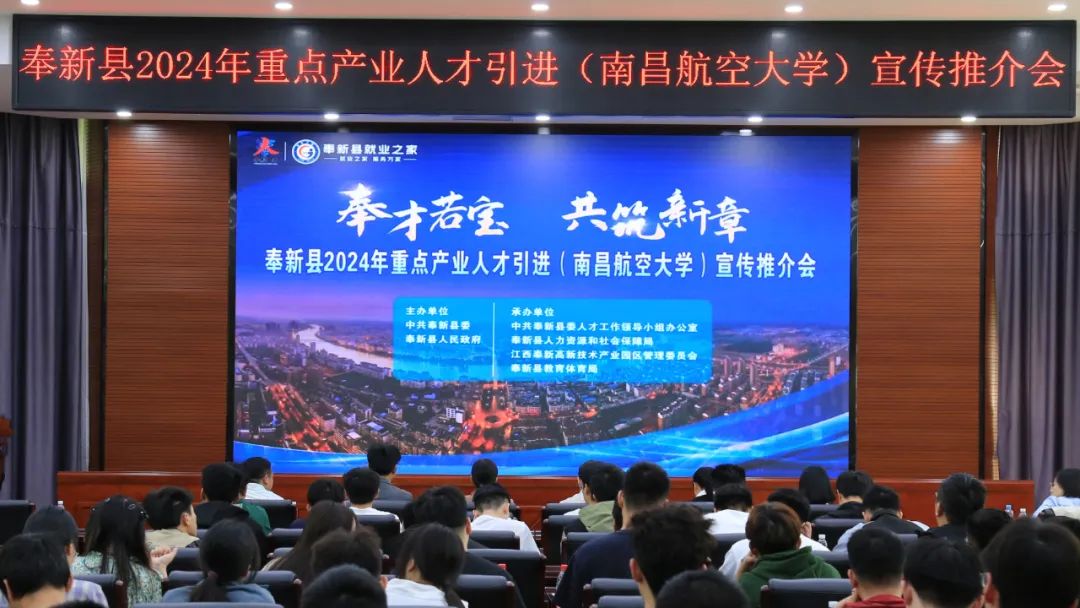 人间最美四月天,不负春光与时行。4月23日,由奉新县委、县政府主办,县委人才办、县人社局、县高新园区、县教体局联合承办的奉新县2024年重点产业人才引进宣传推介会在南昌航空大学举行,与南航学子们开启了一场“春天之约”。