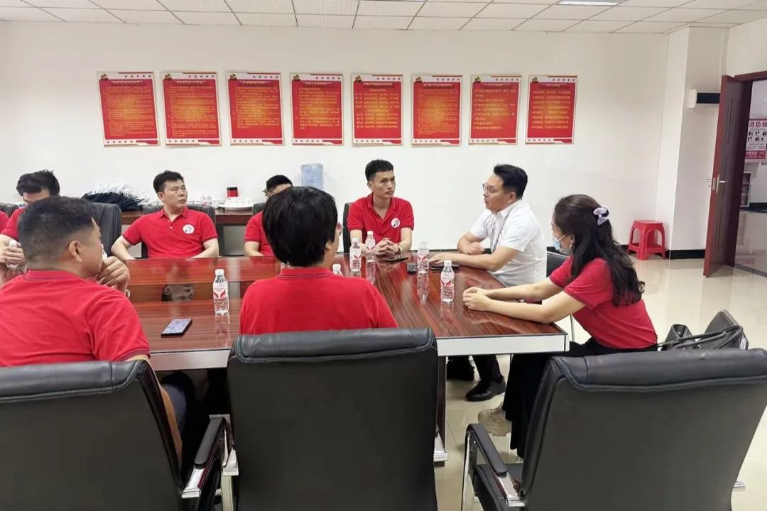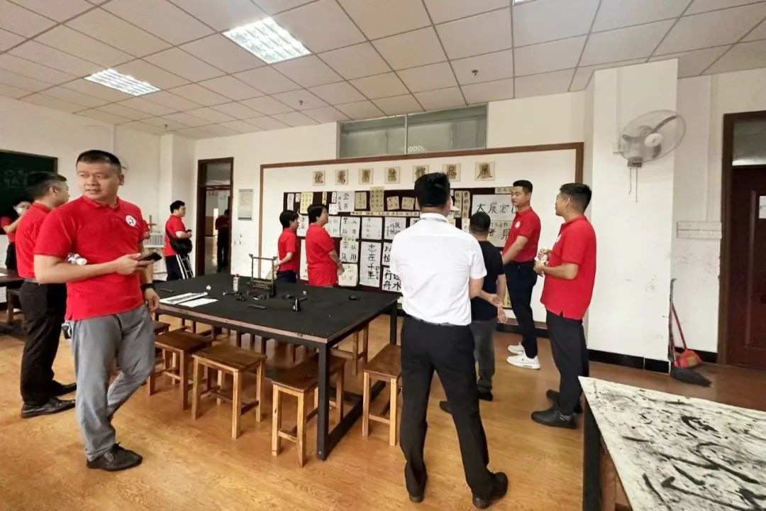 在党员活动室,双方进行了亲切的交流。黄胜文校长表达了对江西商会增城分会各位朋友的热烈欢迎。朱俊海副校长则对商会乡贤们冒雨前来参观表示了深深的感动,并感谢徐芬芬秘书长组织本次活动,他提到江西商会汇聚了众多优秀人才,这样的交流对于双方都有着重要的意义。
