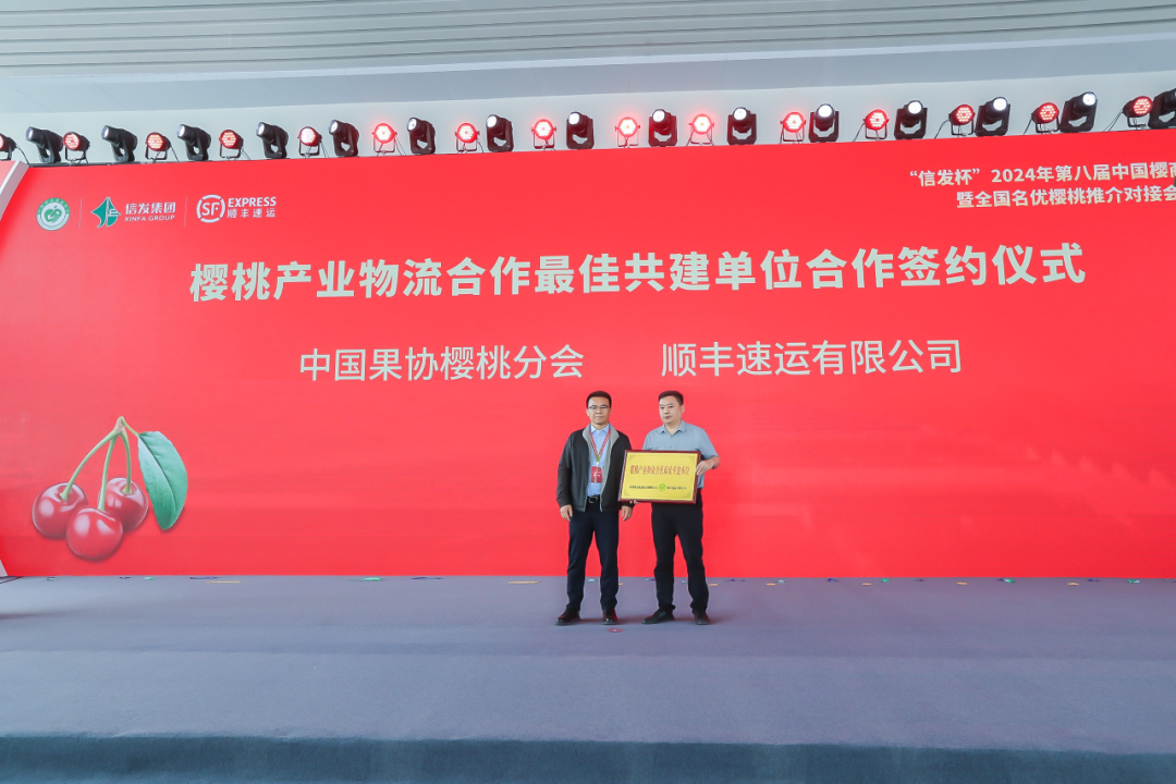 本次活动旨在开拓生态种植、冷链物流、品牌营销的全链条发展思路,深化特色樱桃产业新质生产力发展,推进樱桃产业品牌共建和产销精准对接,实现助农增收。会上,顺丰速运与中国果协樱桃分会签署“樱桃产业物流合作最佳共建单位”,共同推动樱桃产业提质升级。