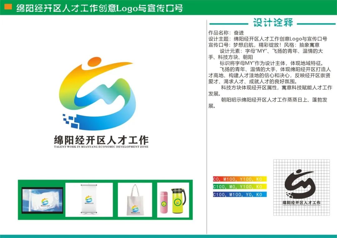 宣传语体现绵阳经开区地域元素,展示经开区崇贤爱才、渴求人才、成就人才的生动画面。主题突出、内涵丰富、创意独特、简短有力、易懂易记、朗朗上口,具有较强的思想性、文学性和时代感,便于记忆、宣传和推广。