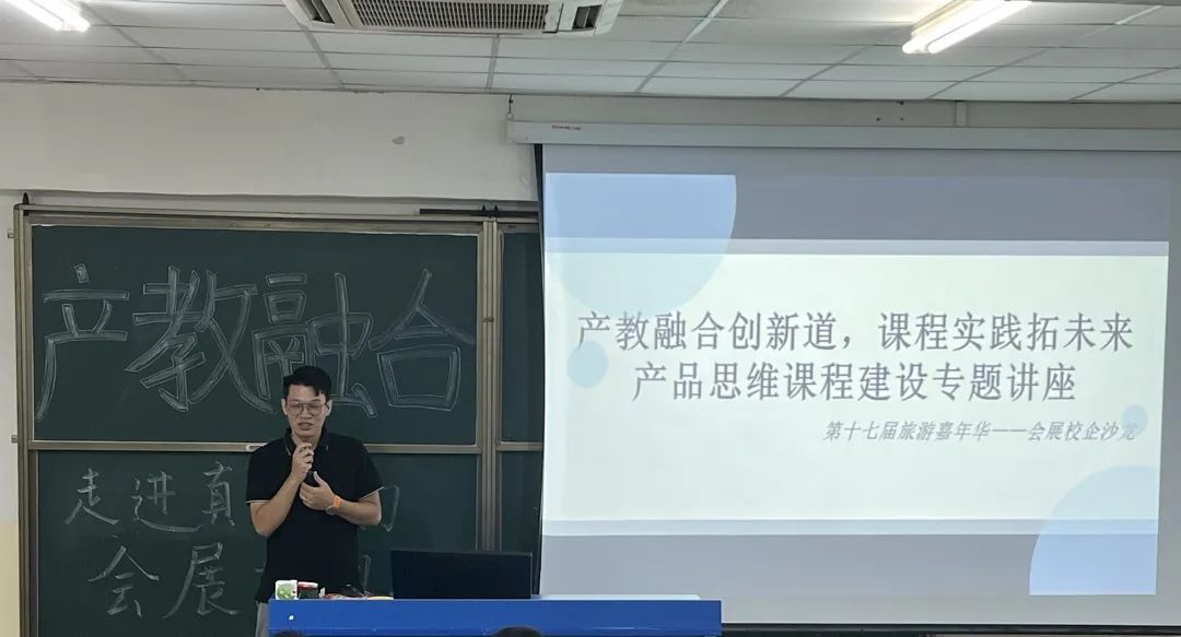 2024年4月22日开展的“产教融合创新道,课程实践拓未来——产品思维课程建设专题讲座,暨第十七届旅游嘉年华会展校企沙龙”活动邀请到了三亚天海同缘文化传播有限公司项目总监张林与项目经理张琪来到现场带领会展专业学生一起走进真实的会展世界,感受产教融合带来的无限魅力!