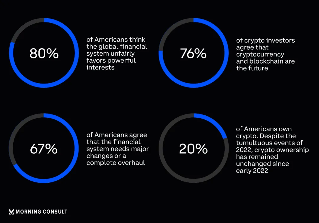 在 2023 年 3 月的银行危机之前,商业情报公司 Morning Consult 为加密货币交易所 Coinbase 进行的一项 2 月份调查发现,大多数受访者已经对全球金融系统感到失望。