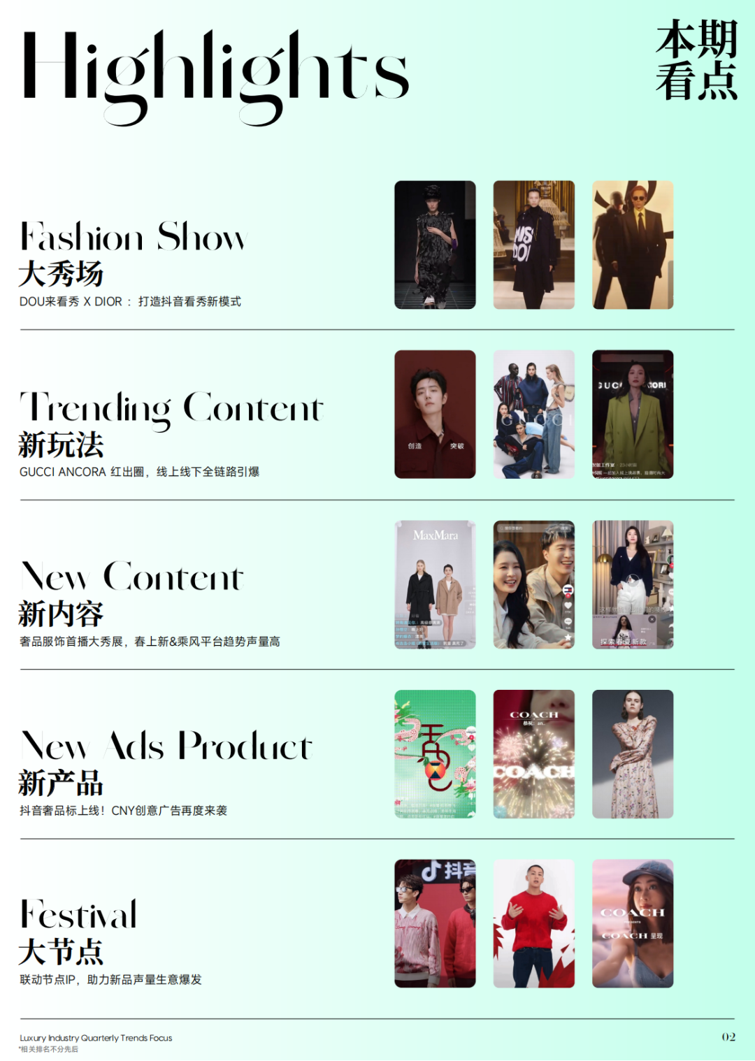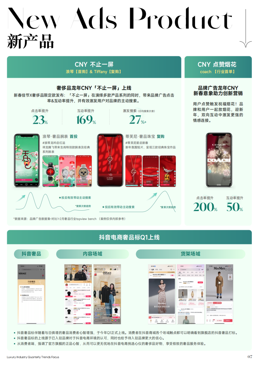 新产品 New Ads Product:抖音奢品标上线,CNY创意广告活动有效提升了品牌广告的点击率和互动率。