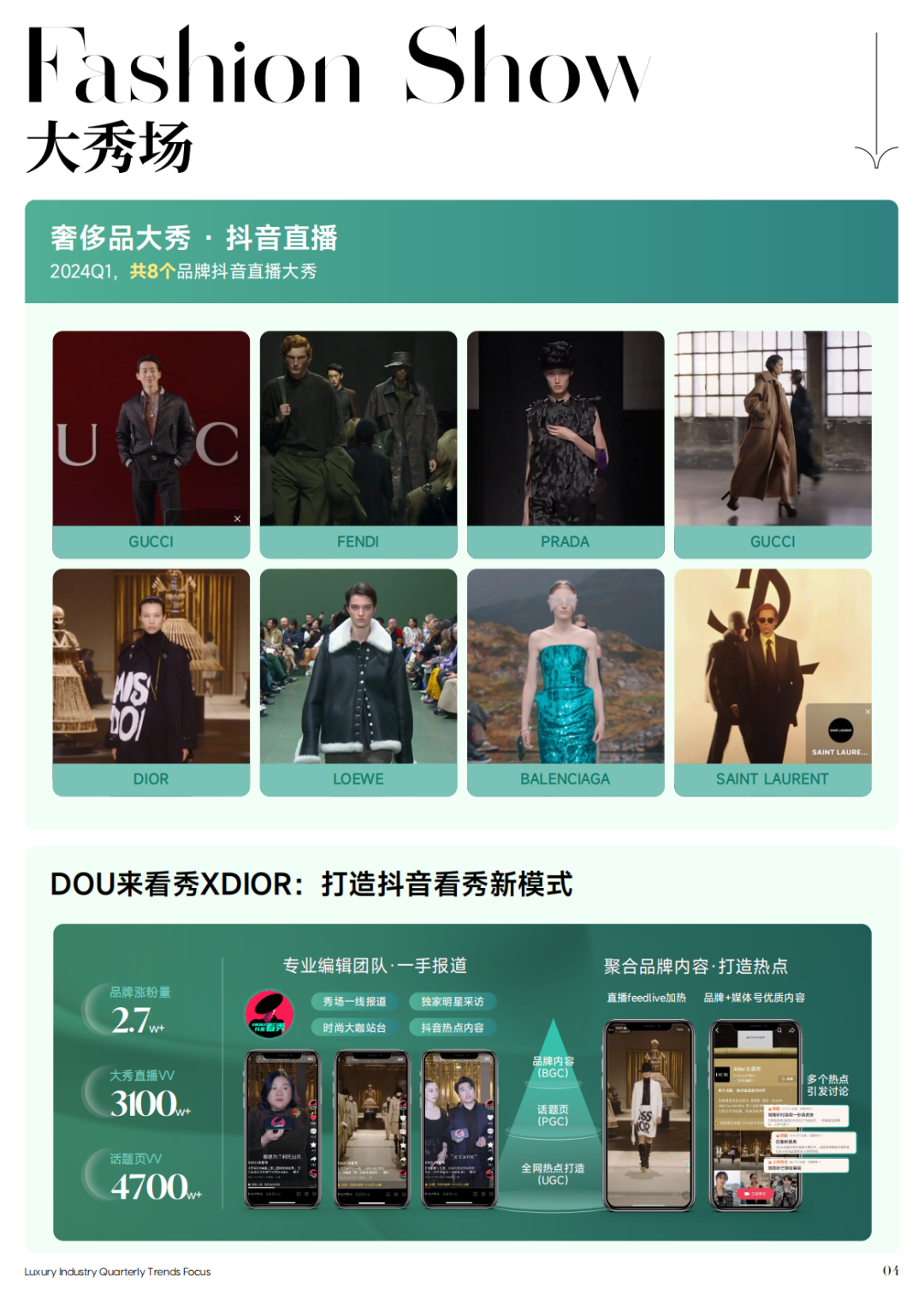 大秀场 Fashion Show:8个品牌通过抖音直播大秀,实现了品牌涨粉和观看量(VV)的显著增长。