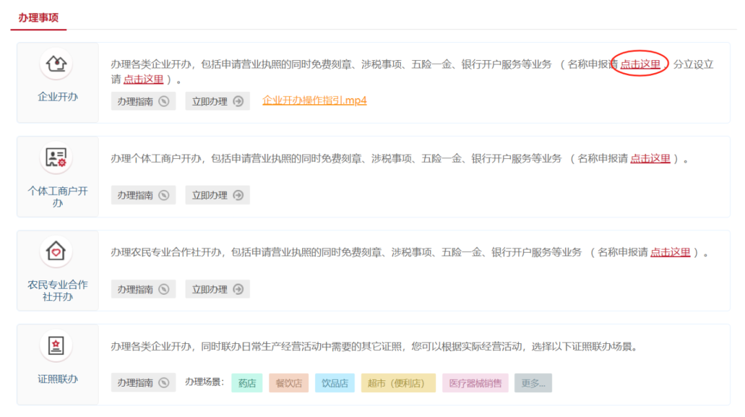 办理事项-名称申报请点击这里