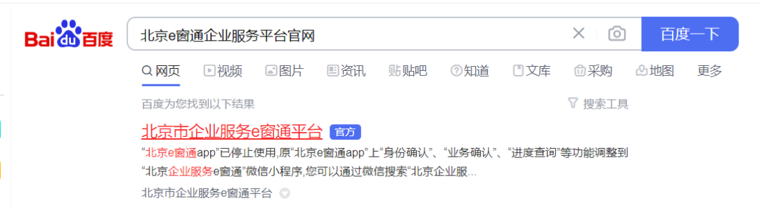 打开百度搜索:北京e窗通企业服务平台官网