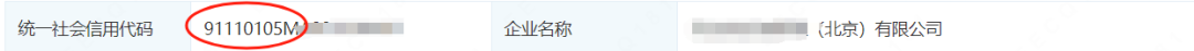 (统一社会信用代码是911开头的字母组合、如果公司名称中包含括号,注意括号的大小写。)