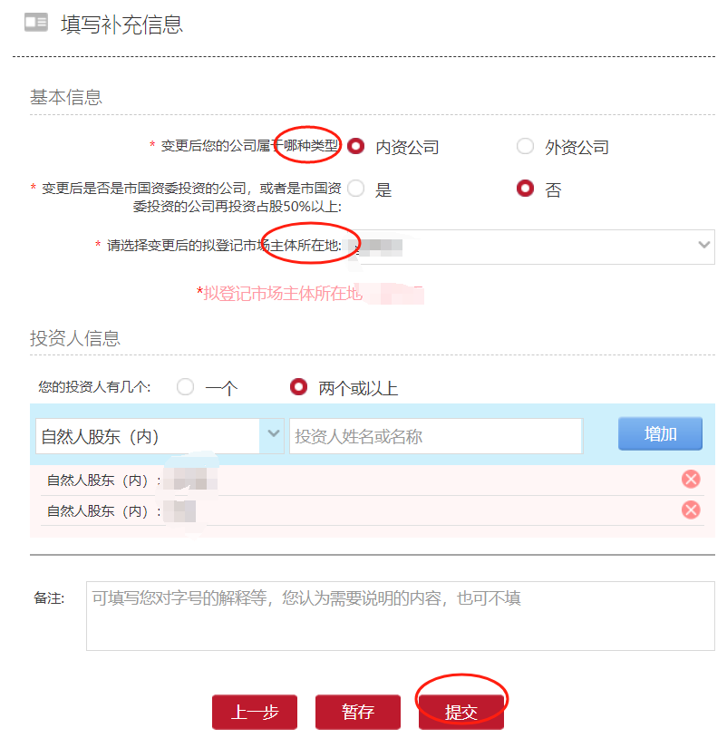根据公司实际情况,填报公司类型、是否国资占股,选择注册地区。