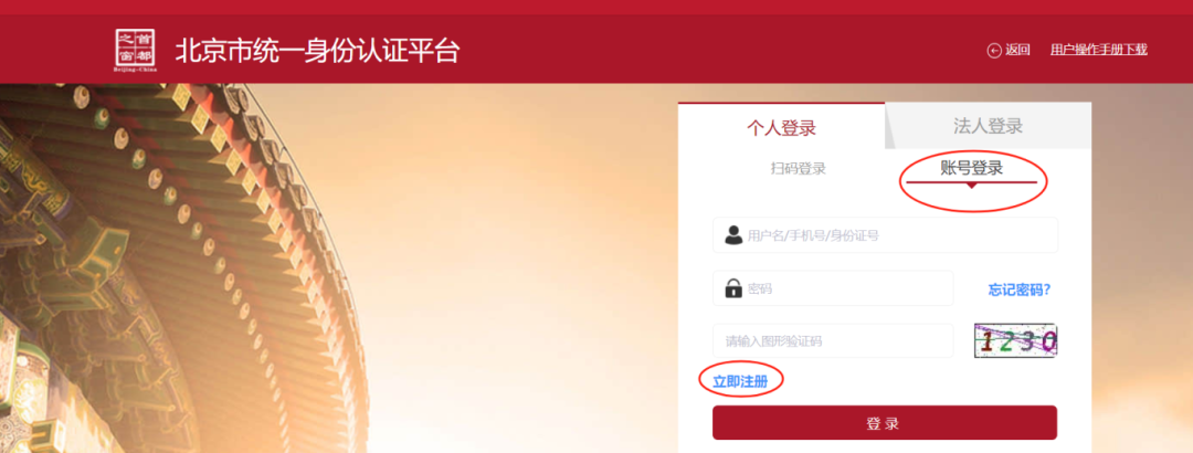 (如果之前没有过账号,就选择立即注册,注册流程,按身份证信息内容填报)