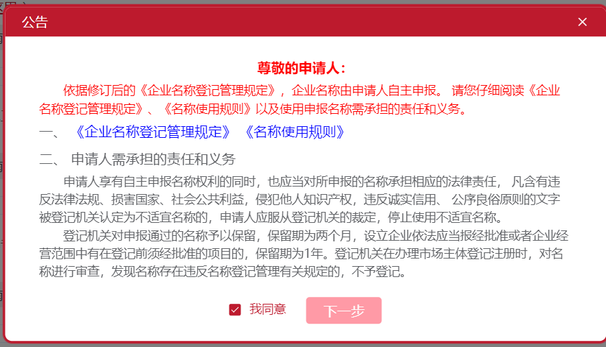 公告-√我同意-下一步