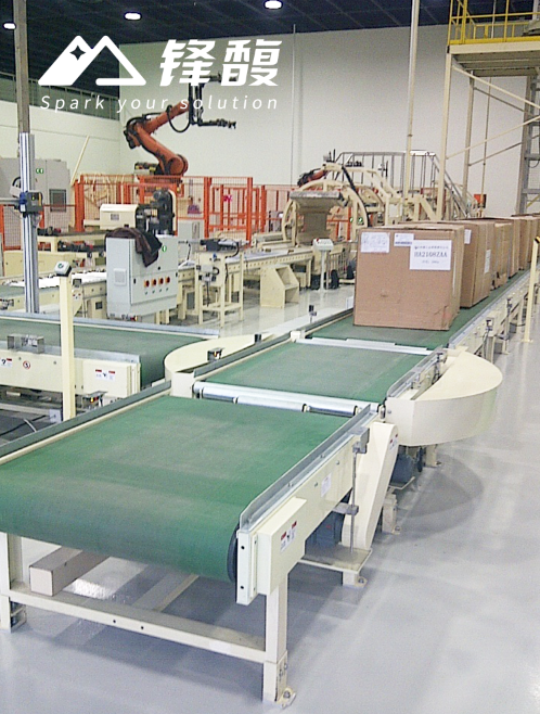 案例:在某智能工厂内,锋馥箱式输送线可根据工厂的实际需求与工艺流程进行定制,按需可分成直线式、转弯式、升降式三种。它连接了工厂内的各道工艺与生产线,解决各工厂人力贵、效率低等问题。