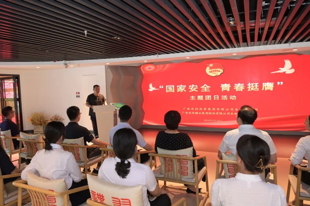 种业集团、新能源集团、农机服务集团(农机院公司)团委结合实际分别组织开展了“国家安全 青春挺膺”主题团日活动,并观看了集团公司参加广西国资国企“爱我国防”演讲比赛一等奖获奖作品《稳稳的幸福》。