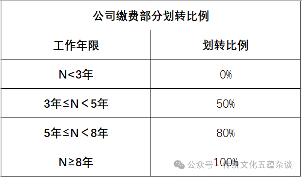 可以看到,只有在这家公司工作超过8年,才能100% 拿到企业缴纳的部分。如果不到3年就离职了,那么公司交的钱,和我们没有一毛钱关系。