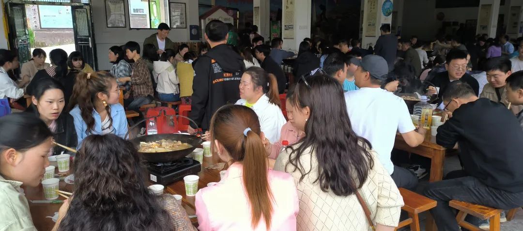午间时分,商会成员们置身大自然的怀抱,品尝了一场地方特色浓郁的户外盛宴。八铺八盖的吊桥沟吊锅内,山珍野味巧妙搭配,热气腾腾,香气四溢,地道的乡土风味让人赞不绝口。而那九晒九蒸的木子店老米酒,甘醇馥郁,口感绵长,传统工艺赋予其独特韵味,与吊锅美食相得益彰。这场舌尖上的旅行,不仅满足了众人的味蕾,更让大家深入领略了吊桥沟深厚的地方文化和饮食魅力,大快朵颐之余,余味悠长。