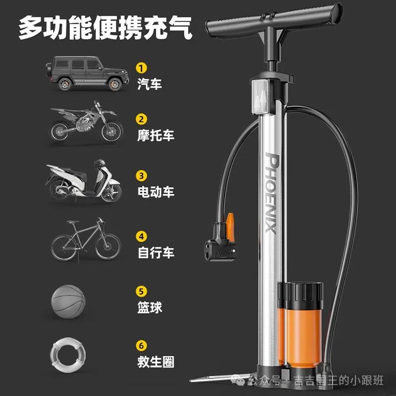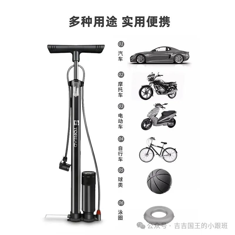 多功能充气:不仅适用于自行车、电动车、摩托车等车辆的轮胎充气,还可以用于篮球、足球、儿童玩具车等各种充气物品的充气。