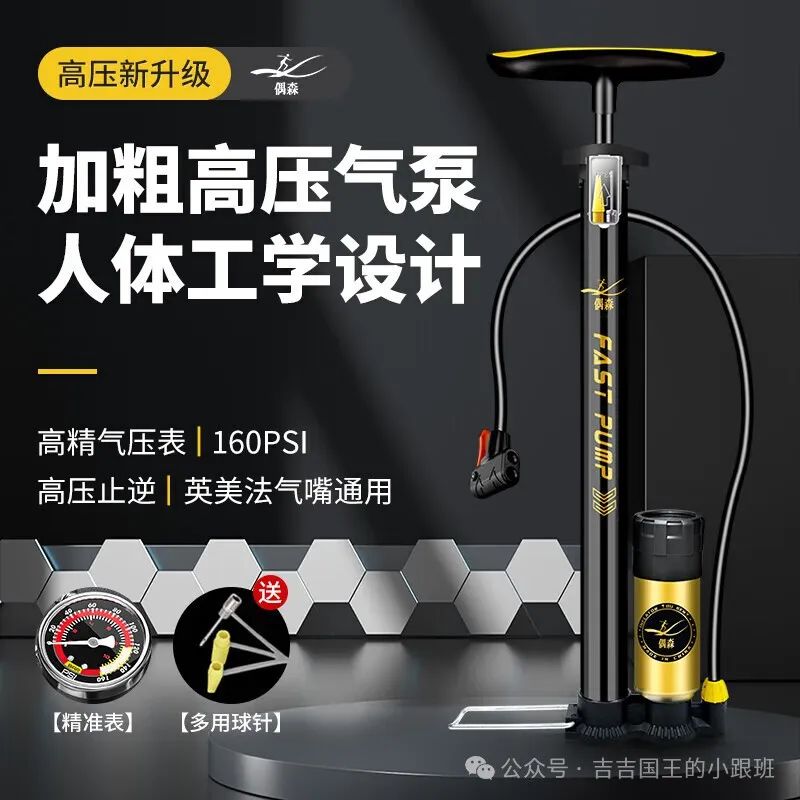 高压打气筒:可以达到120PSI的气压,满足各种充气需求。