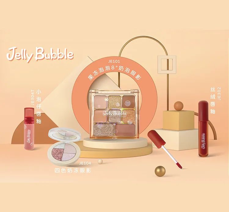 Jelly Bubble 果冻泡泡彩妆,甄选健康原料,融合流行色系,辅以潮趣设计,铸就高品质、有趣有颜、好用不贵的国货彩妆,旗下七彩泡泡、奶冻系列产品大放异彩。更精心打造果粉专属卡通形象,重新定义玩美主义彩妆!果冻泡泡,果感玩美!