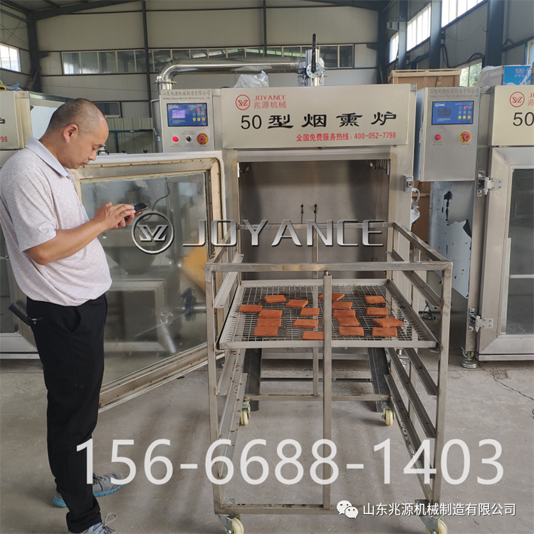 使用供应全自动湖南豆干烟熏炉腌制豆干能用到的工艺有三种:烘干、烟熏、上色等,豆干中水分很多,直接给上色的话是容易入色的,烘干的干好目的是利用设备迅速将高温豆干的表皮凝结锁住豆干内部水分。