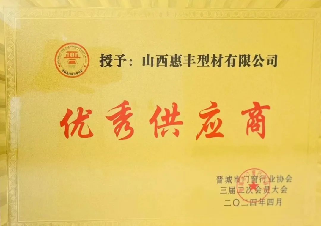 荣誉的获得是协会和行业客户对惠丰型材的认可与肯定。我们将始终坚持“以客户为中心”的服务理念,持续提升产品质量和服务水平,为客户提供更优质、更专业的型材、门窗产品。