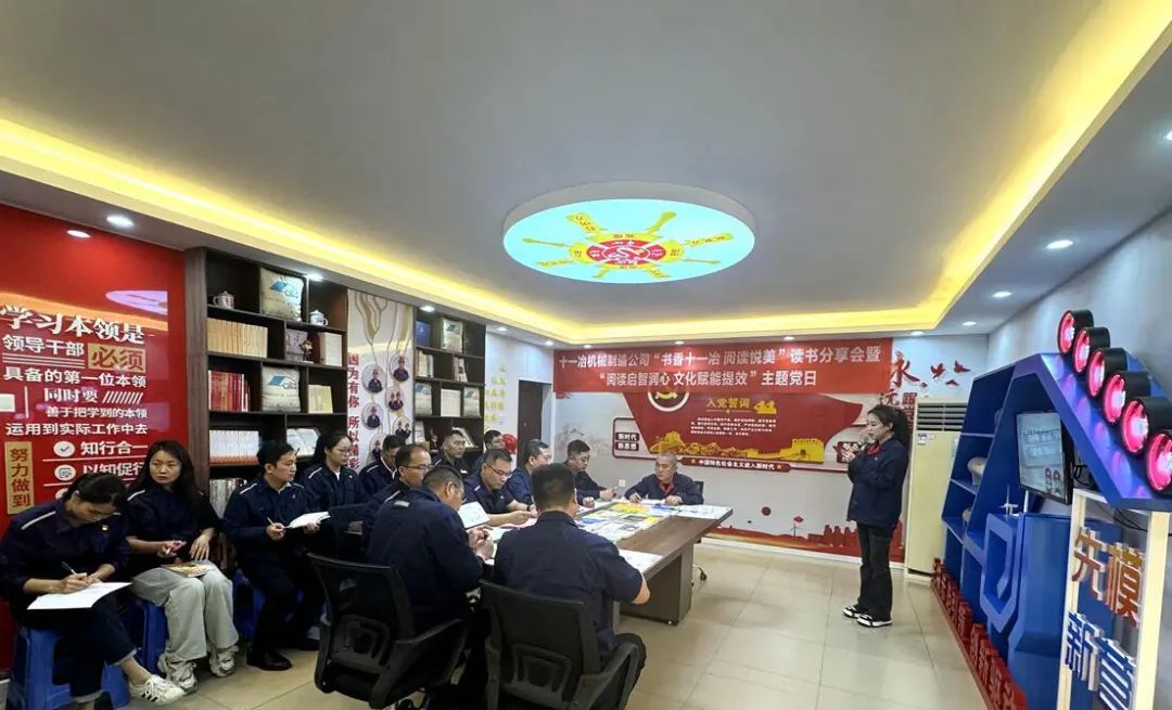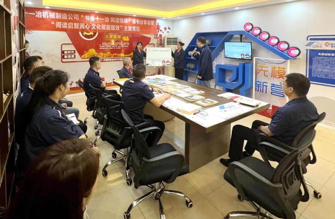 4月24日上午,十一冶机械制造公司在“先模创新营”阵地开展“书香十一冶 阅读悦美”读书分享会暨“阅读启智润心 文化赋能提效”主题党日。四公司党委书记、副总经理潘绍兵,机械制造公司董事长朱恕冰,四公司纪委书记、工会主席、副总经理伍平华,机械制造公司党支部书记、总经理毕伟,机械制造公司在柳党员以及读书爱好者共20余人参加活动。