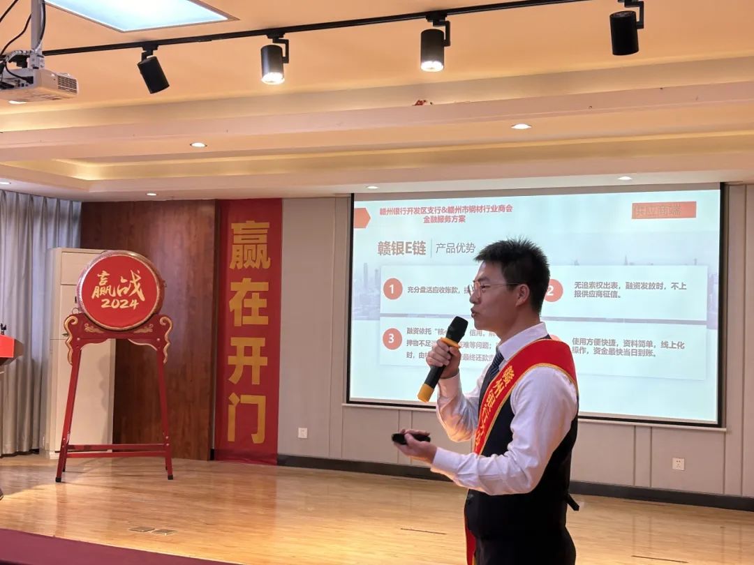 2024年4月22日上午,赣州市钢材行业商会第五届七次理事(扩大)会议暨“银企合作 共同发展”主题活动在赣州银行经开区支行三楼会议室召开,会议由轮值会长黄继赣主持。