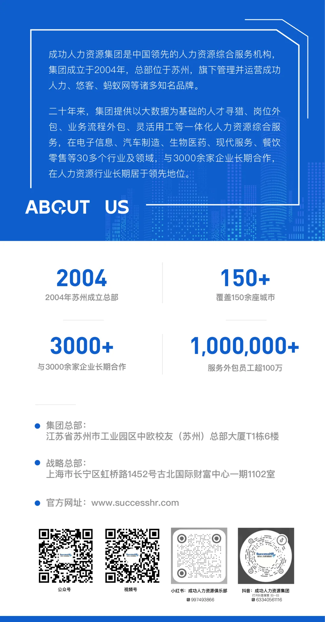 我们深知企业在出海过程中面临的用工难、落地难等问题,因此,成功人力资源集团通过专业的团队和丰富的经验,为客户量身定制解决方案,确保企业能够顺利、稳定地进入新市场。我们不仅协助客户解决用工问题,还通过优化人力资源配置、提升员工满意度等方式,我们坚信,成功人力资源集团的专业服务将成为企业出海道路上的有力支撑,推动企业健康发展。