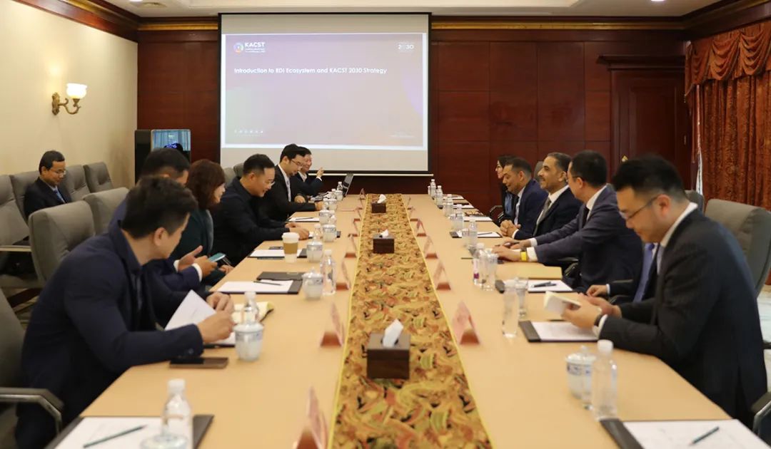 阿卜杜勒-阿齐兹国王科技城(KACST)顾问阿卜杜拉·霍瓦提,阿卜杜勒-阿齐兹国王科技城(KACST)办公室主任诺夫·沙比库,阿卜杜勒-阿齐兹国王科技城(KACST)成果转化总经理奥马·侯赛尼等;启迪控股高级常务副总裁、国际科技园及创新区域协会(IASP)前主席陈鸿波,启迪控股董事会秘书、高级副总裁、启迪科服执行总裁杨明,启迪控股高级副总裁赛扶麟,启迪控股高级副总裁、启迪环境董事长王翼,启迪之星副总经理王飞,广东启迪集团国际部总监马骞等参加座谈。