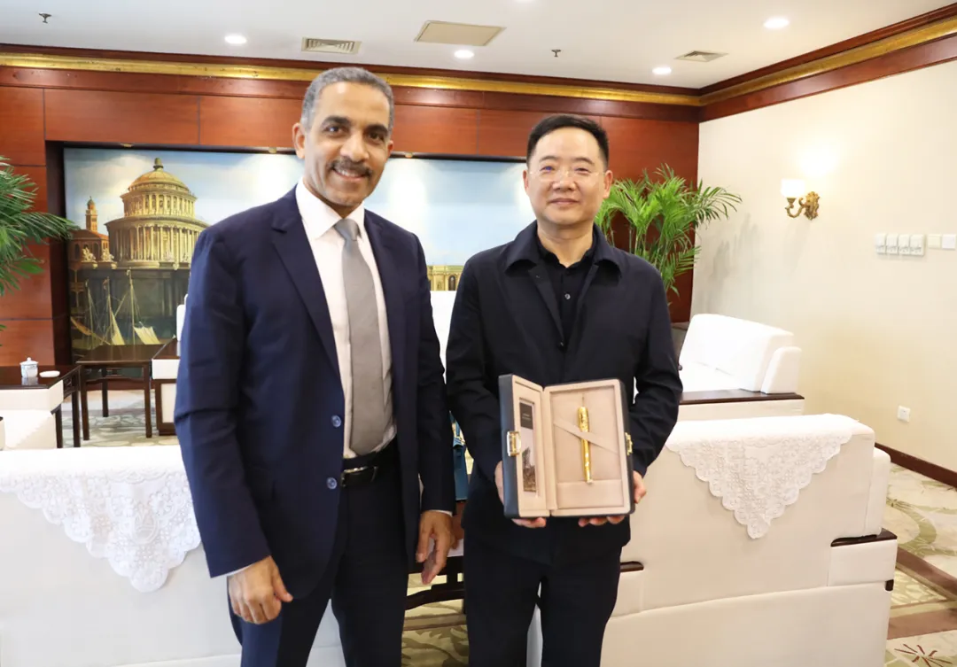 ▲ 哈立德·阿达坎高级副总裁向王济武董事长赠送纪念品
