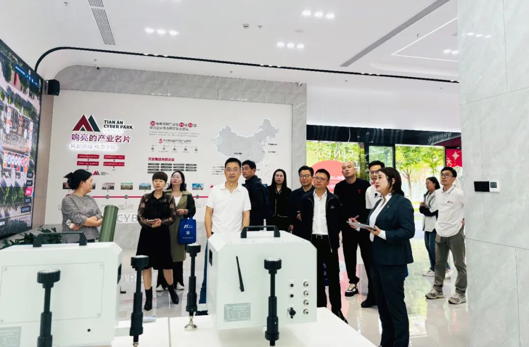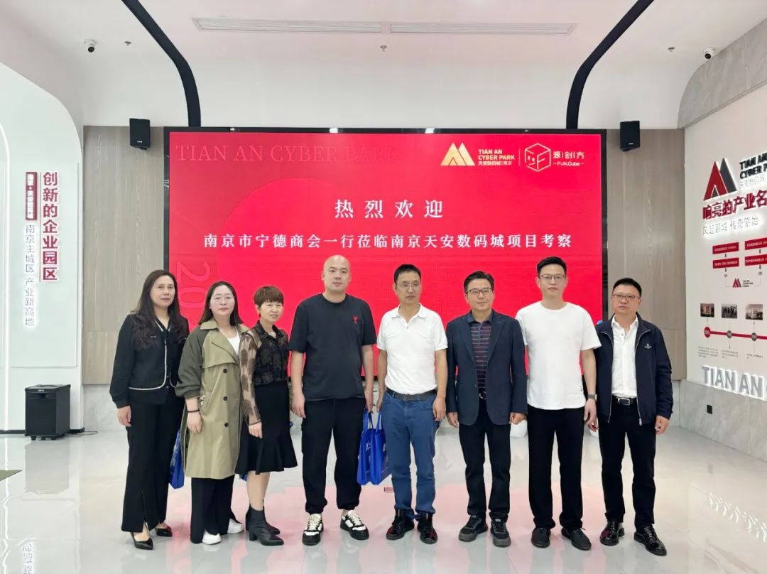 4月24日,南京新远见智能科技有限公司、南京市宁德商会轮值会长、木林森活性炭江苏有限公司董事长汤海涌、南京市宁德商会监事长、南京状元食品有限公司董事长林伟、欢宜影视文化传媒(江苏)有限公司总经理卓佐清、南京常青树建材有限公司总经理肖敏建、南京金加露贸易有限公司总经理谢秀兰、南京市宁德商会秘书长陈荣华、北京优享白菜网络科技有限公司总经理林绿茵一行来访南京天安数码城参观考察。