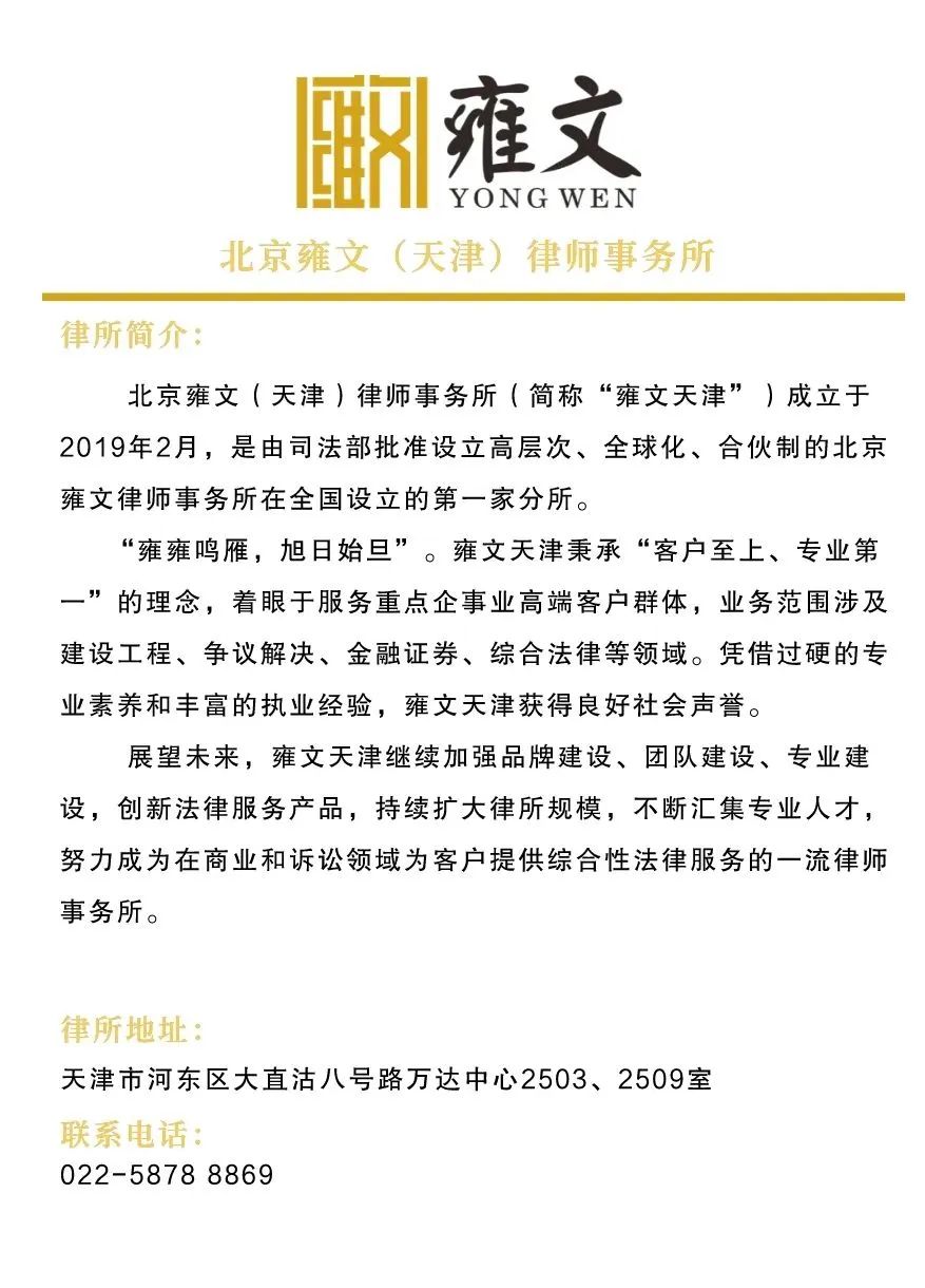 交谈中,天津市甘肃商会党支部书记、常务副会长权春和表示法律以及律师在生活工作中的重要性。寄望雍文律师事务所自身做大做强的同时,深入贯彻习近平总书记在民营企业座谈会上的重要讲话精神,充分发挥职能作用,为民营企业发展营造良好法治环境,运用自身的特长,帮助商会和企业分析、研究、解决在生产经营中存在的法律风险、遇到的法律问题,为商会和企业的健康发展保驾护航,加油助力。
