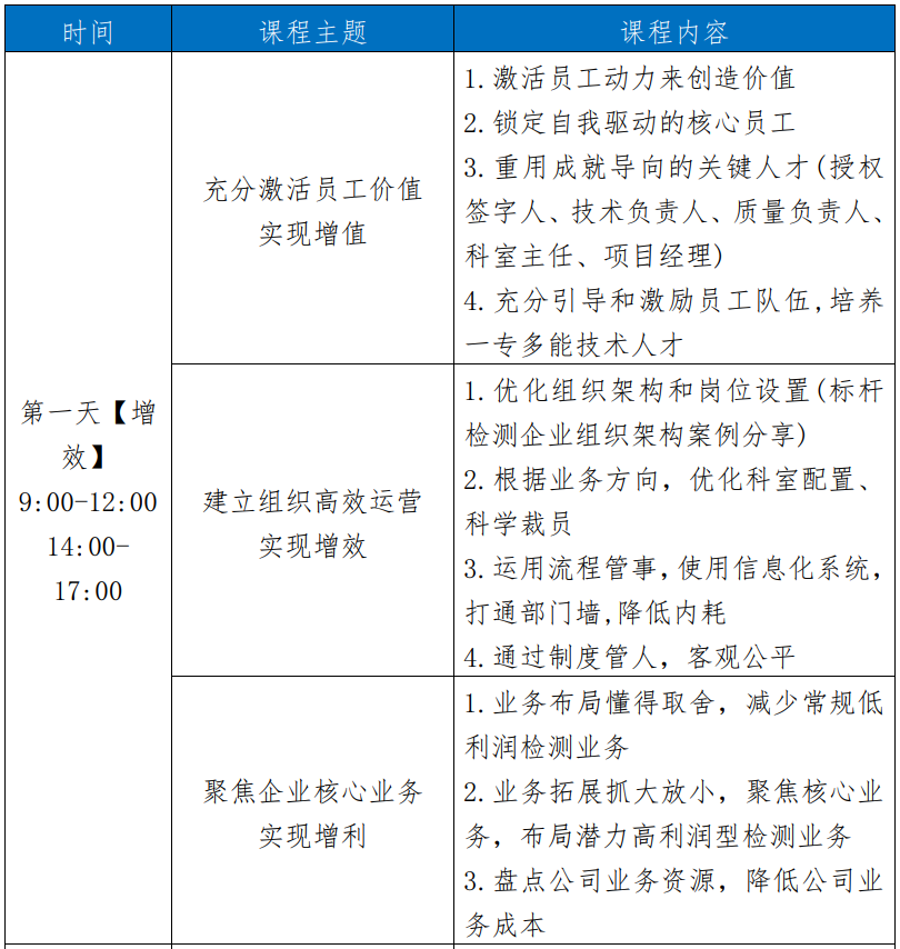 为助力企业打造自运转管理体系,助力老板和中高管运用组织和流程机制的抓手去管控经营。加强各检测单位之间相互学习与交流,以切实解决各单位遇到的各种管理问题为目标。