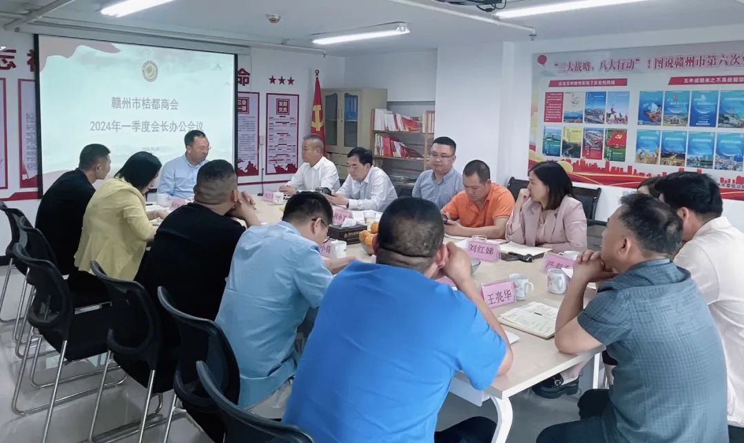4月24日下午,赣州市桔都商会在商会会议室召开2024年一季度会长办公会议。会议传达贯彻市工商联全市组织建设工作会议主要精神,通报一季度商会主要工作和财务收支情况,研究提升服务会员的重大举措。会长林炳煌,执行会长兼妇委会主任刘菲,执行会长兼青年企业家委员会主任潘振华,荣誉会长刘卫东,荣誉会长、监事长陈松林,副会长何小丁、谢小锋、凌炎烽、林文韬,理事刘红娣、谢斐、吴功源、严春萍,秘书处廖志刚、王亮华、李丽梅等参加。