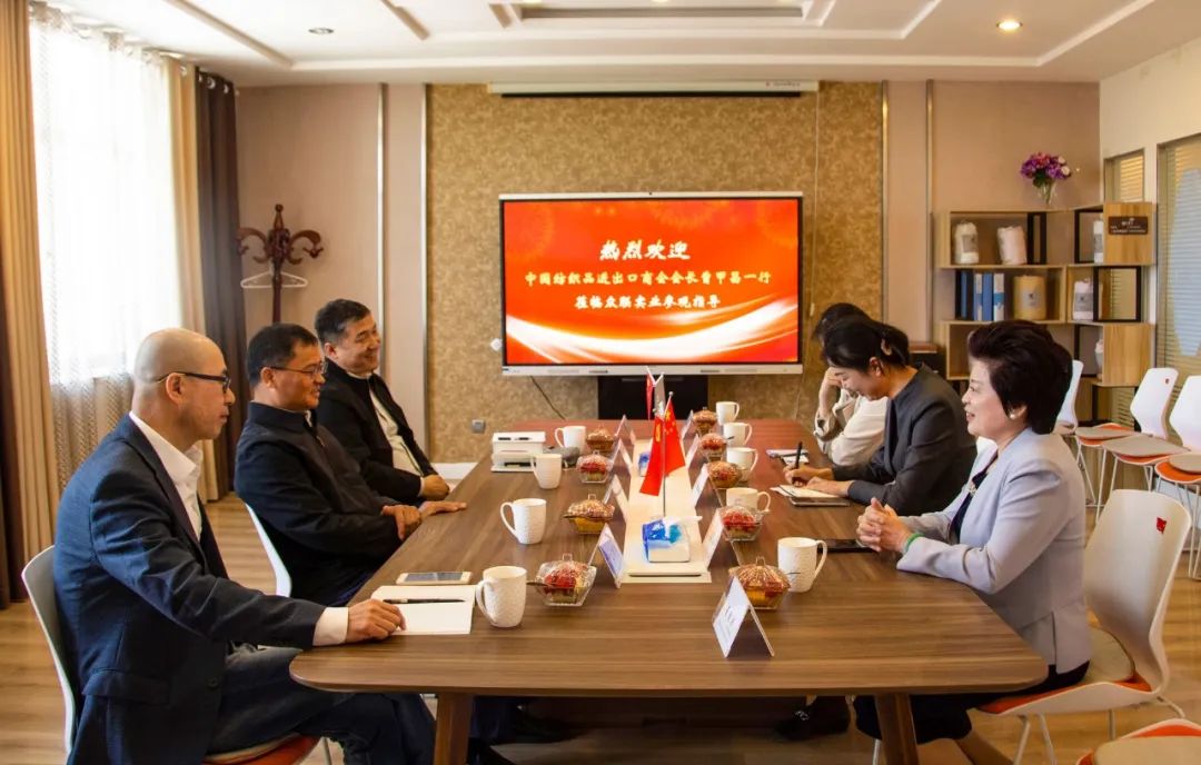 4月的烟台,春意盎然,鲜花盛开,曹会长一行按原计划到达我司。在牟平区商务局局长郝俊怡、牟平区商务局党组成员杨昕以及我司创始人、董事长姜学莲等一众高管的陪同下,曹会长一行深入我司进行了调研。在参观了我司国际、国内产品展厅后,落座三楼会议室,曹会长与郝局长、姜董事长等人进行了深入交流。