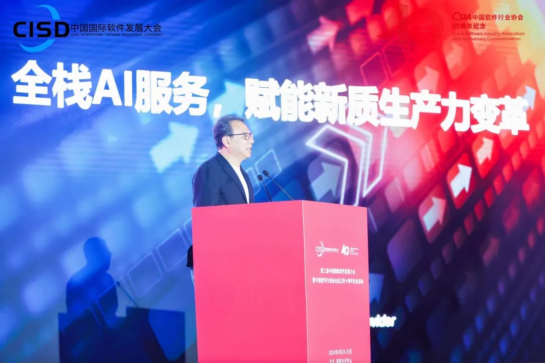 在企业领袖演讲环节,中软国际董事局主席、CEO陈宇红博士受邀发表《全栈AI服务,赋能新质生产力变革》的重要演讲。