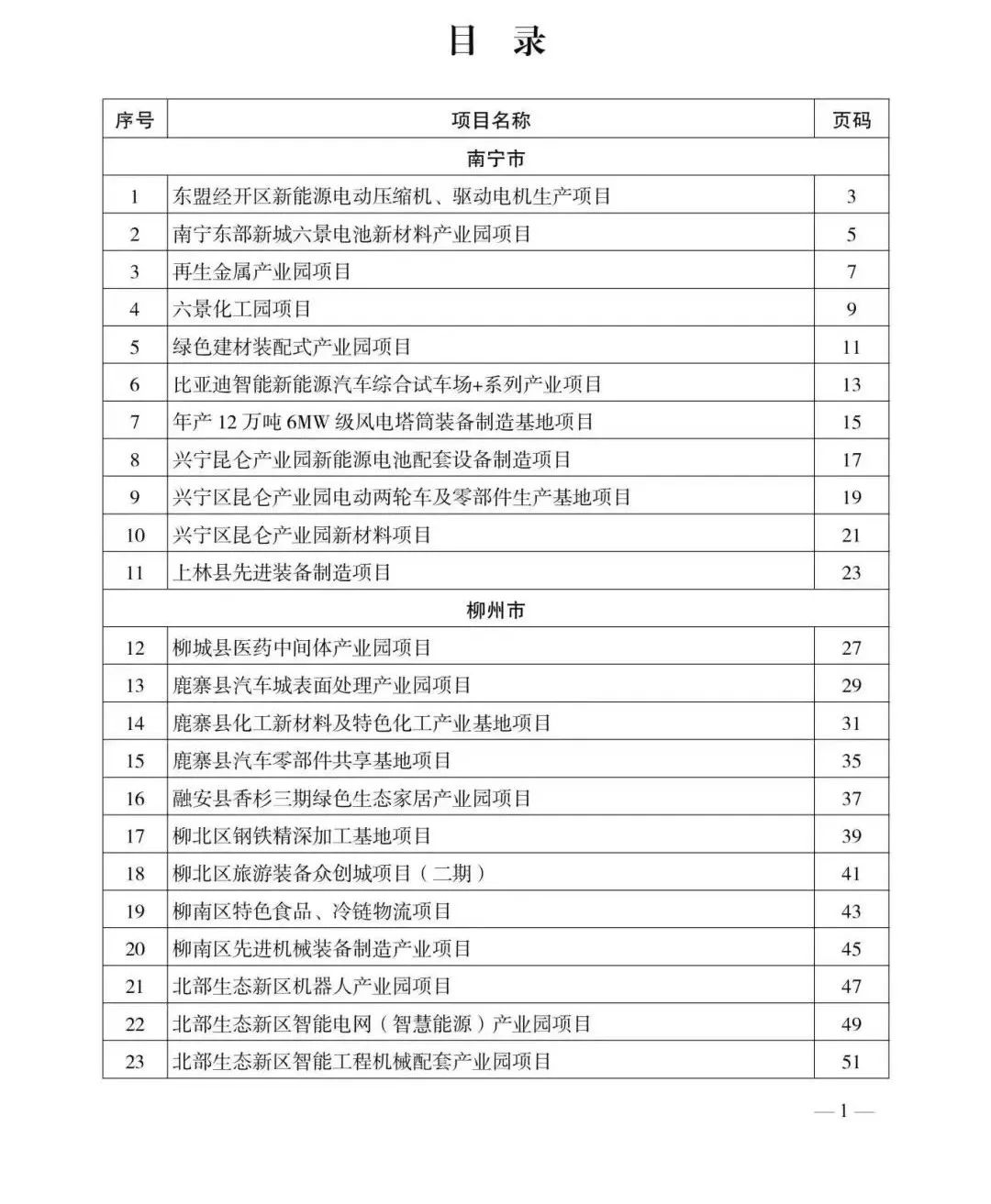 在《广西重点产业投资合作项目(第一批)》中,南宁市入选的项目有广西—东盟经开区新能源电动压缩机、驱动电机生产项目,以及南宁东部新城六景电池新材料产业园项目、再生金属产业园项目、六景化工园项目、绿色建材装配式产业园项目等11个。