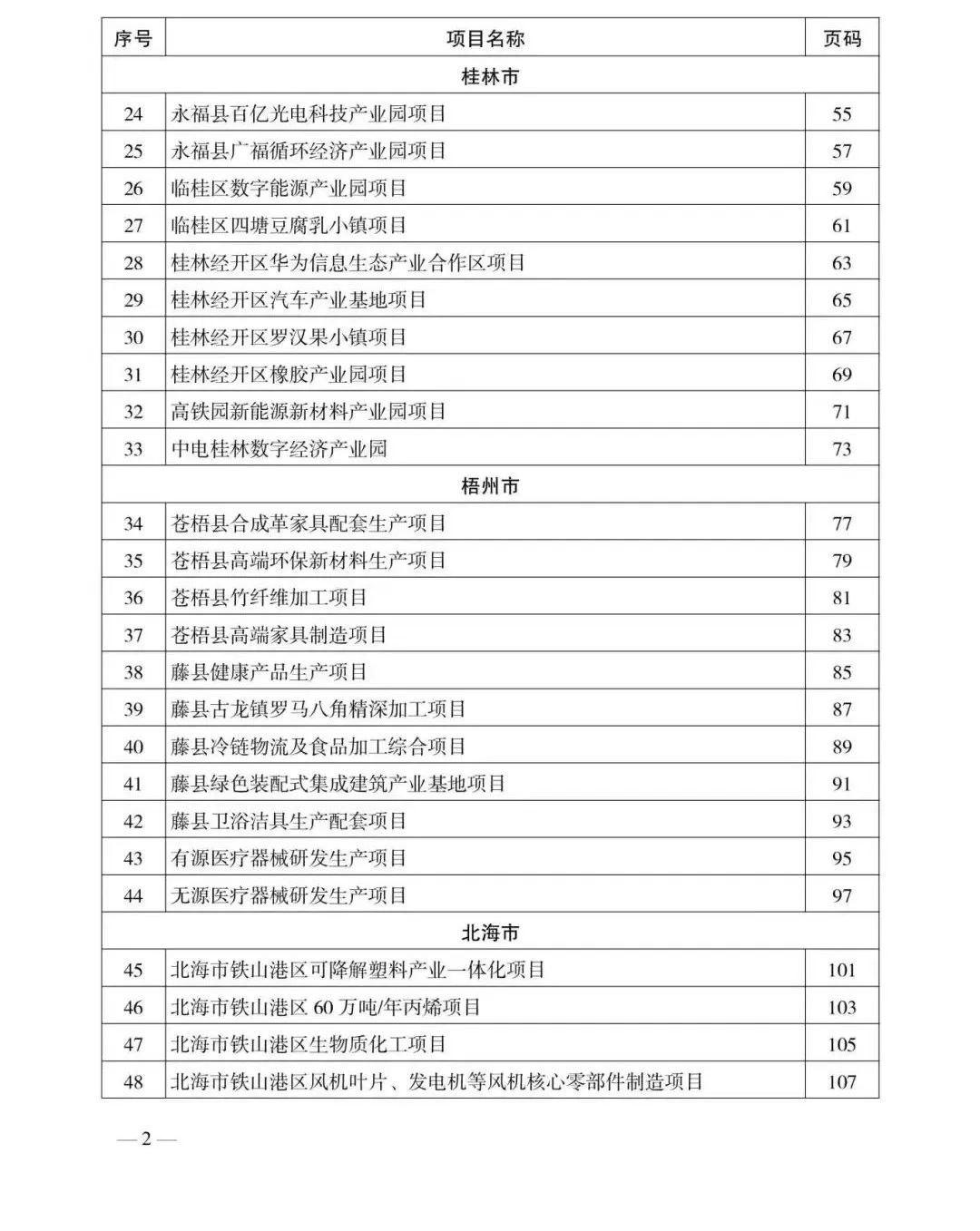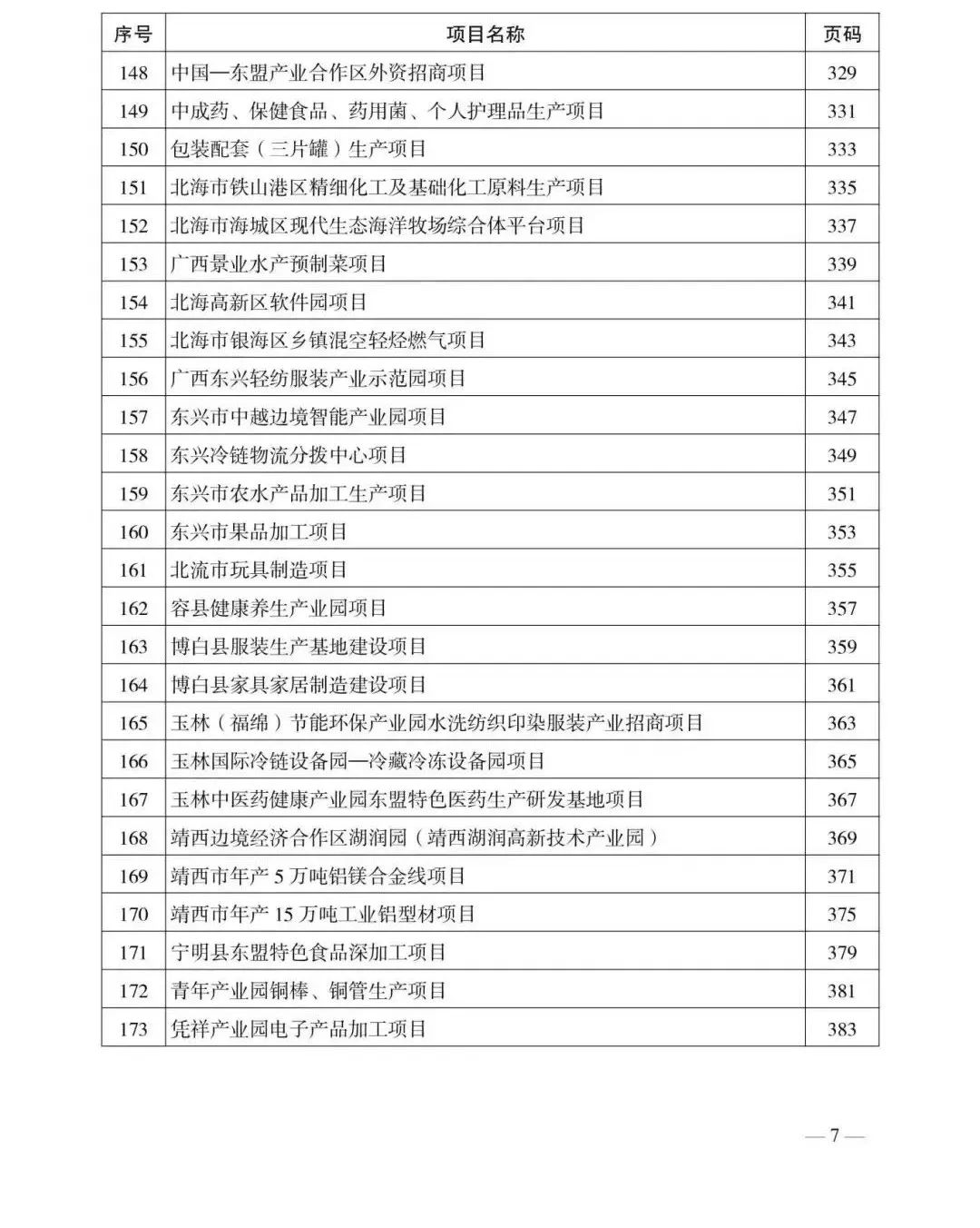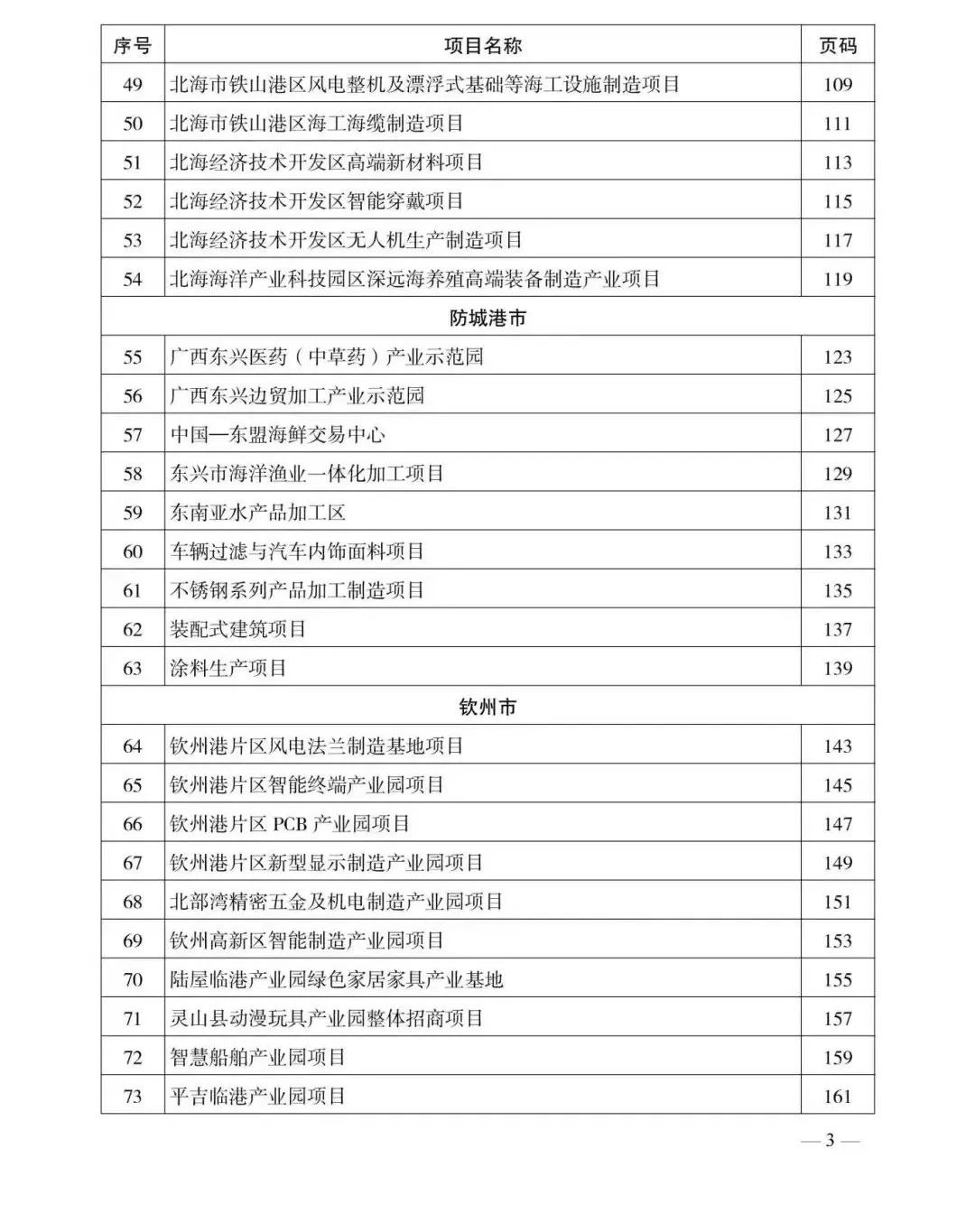 防城港市入选的项目有:广西东兴医药(中草药)产业示范园、广西东兴边贸加工产业示范园、中国—东盟海鲜交易中心、东兴市海洋渔业一体化加工项目、东南亚水产品加工区、车辆过滤与汽车内饰面料项目、不锈钢系列产品加工制造项目、装配式建筑项目、涂料生产项目。