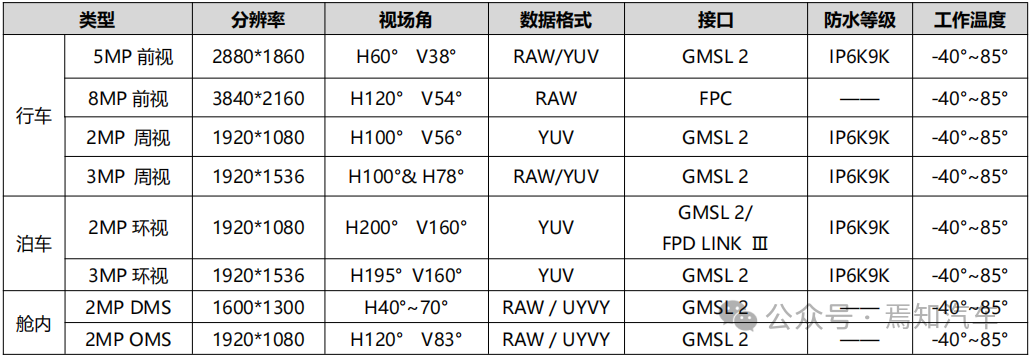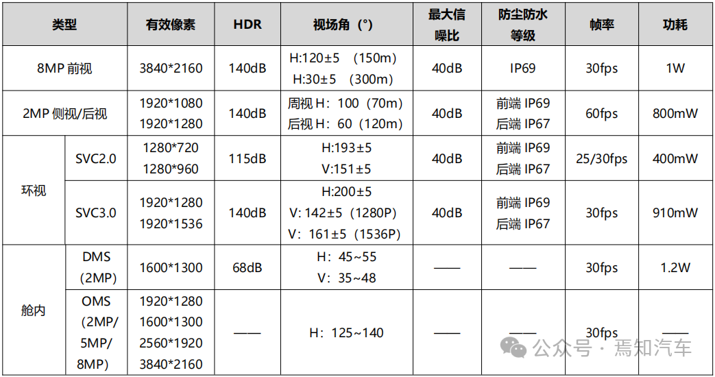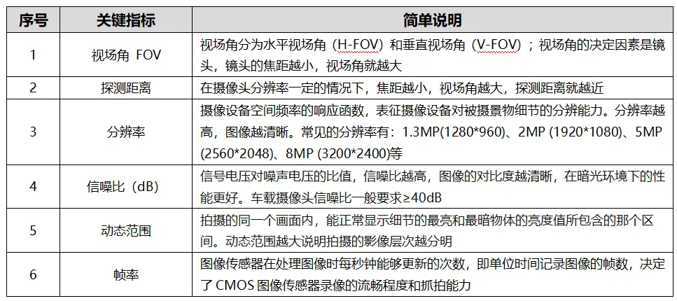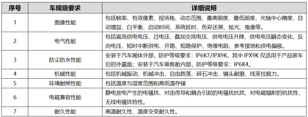 信息来源:《QCT/T 1128 汽车用摄像头》、公开资料整理