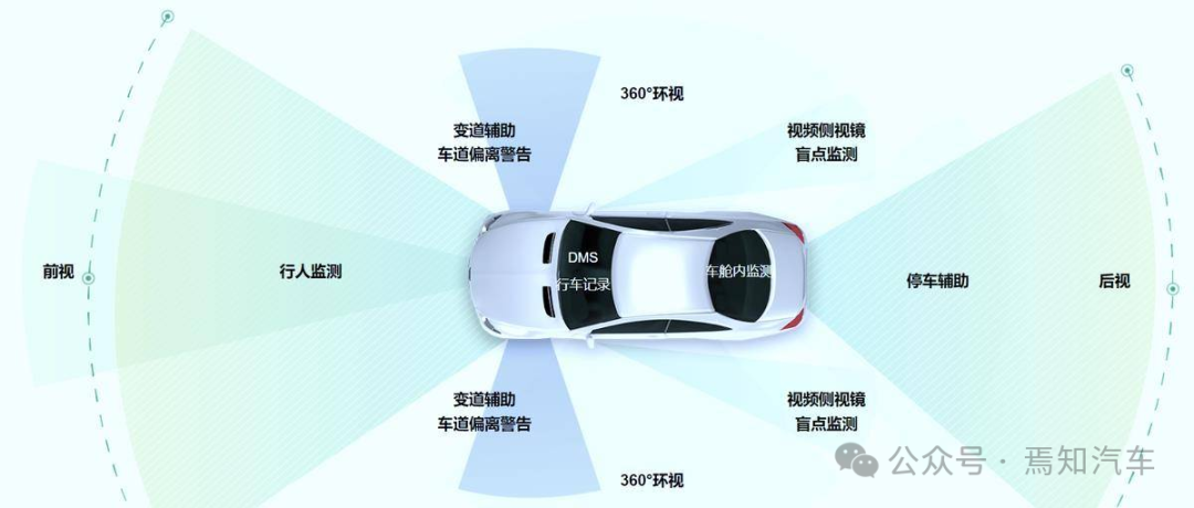 区别于倒车后视摄像头或环视中的后部摄像头,该摄像头为行车辅助摄像头,它与侧视以及前视摄像头共同覆盖360°的中长距离的行车视觉感知范围。