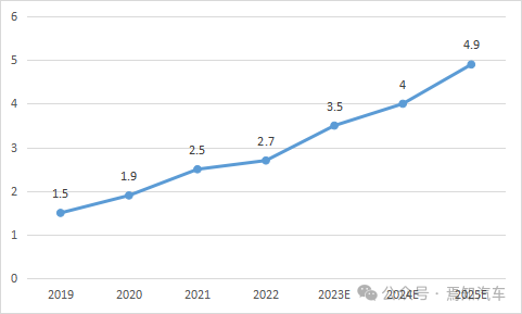 据CINNO Research预测,2023年,国内乘用车市场摄像头搭载量将进一步提升至7200万颗,到2025年,这一数字将超过1亿颗,2023~2025年的年复合增长率为17%。