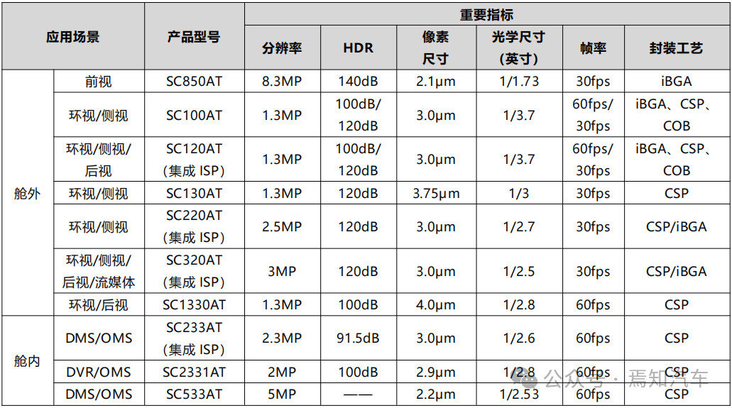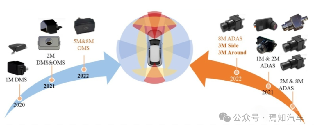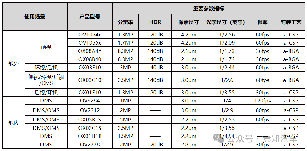 OMS摄像头的CMOS图像传感器分别采用豪威的OV2778、OV2312、OVX8B,LED波长为940nm;