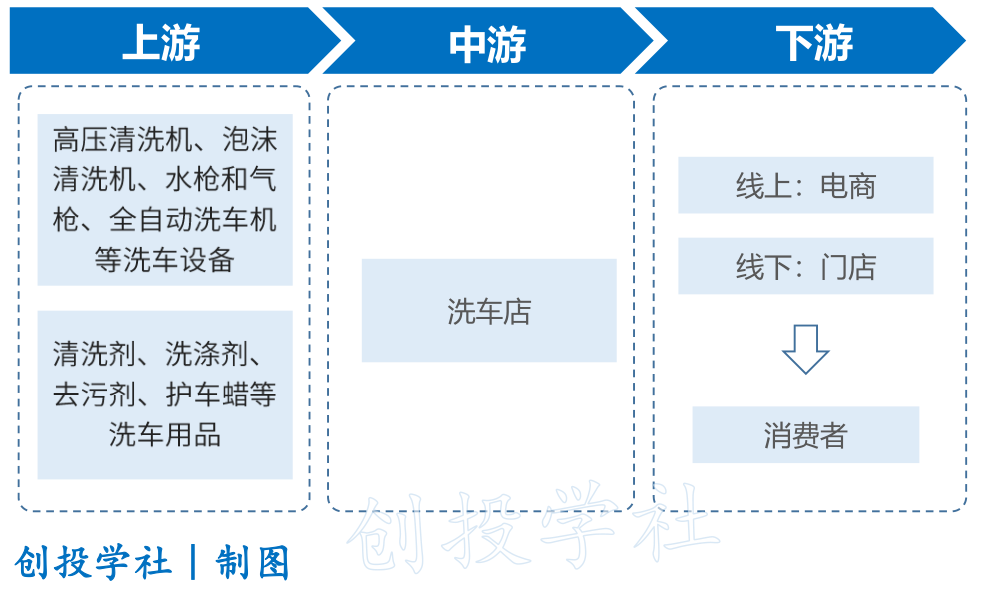 洗车行业的产业链可分为上游的洗车设备和洗车用品供应商、中游的洗车店和品牌连锁店,以及下游的消费者。上游的洗车设备包括高压清洗机、全自动洗车机等,洗车用品包括清洗剂、洗涤剂等。中游则是各类洗车店,包括品牌4S店、汽车美容连锁店等。下游则是最终消费者,即车主。产业链上游的洗车设备和洗车用品供应商承担着提供设备和材料的角色,中游的洗车店则是提供洗车服务的主体,下游的消费者则是洗车行业的最终目标。