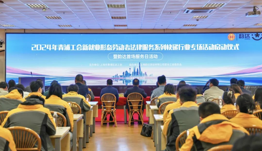 4月25日,2024年青浦工会新就业形态劳动者法律服务系列快递行业专场活动启动仪式暨韵达首场服务日活动在韵达总部举行。本次活动由中国国防邮电工会、上海市总工会和全国总工会韵达蹲点组推动和指导,上海市青浦区总工会主办,韵达公司工会协办。