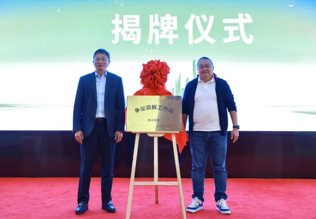 上海市总工会劳动关系工作部部长曹宏亮,青浦区香花桥街道党工委书记、人大工委主任朱要武为“争议调解工作站”揭牌。