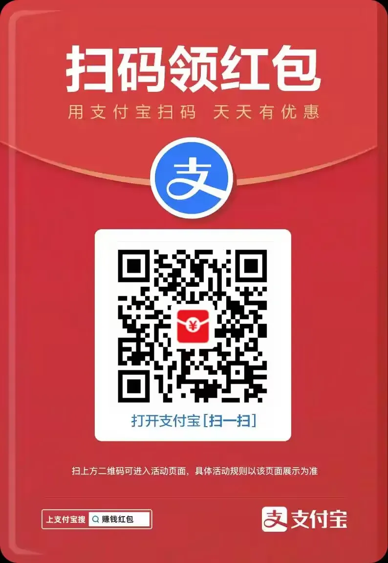 支付宝新红包补贴活动来了!将下面的图片保存到手机相册里,然后打开手机支付宝,使用支付宝“扫一扫”,点击“相册”,选择该图片即可扫码领红包。