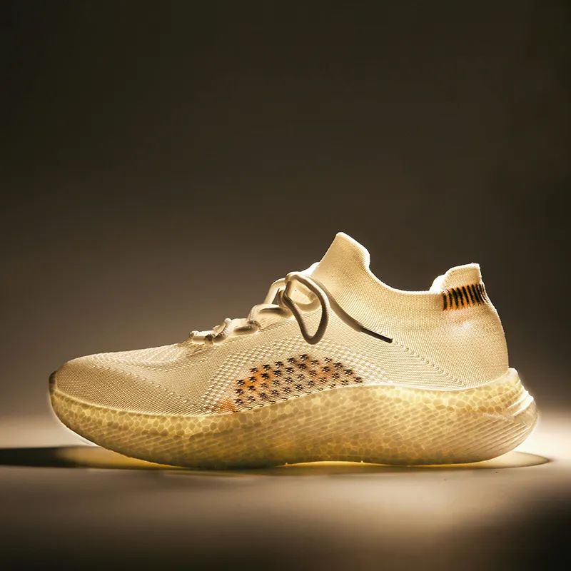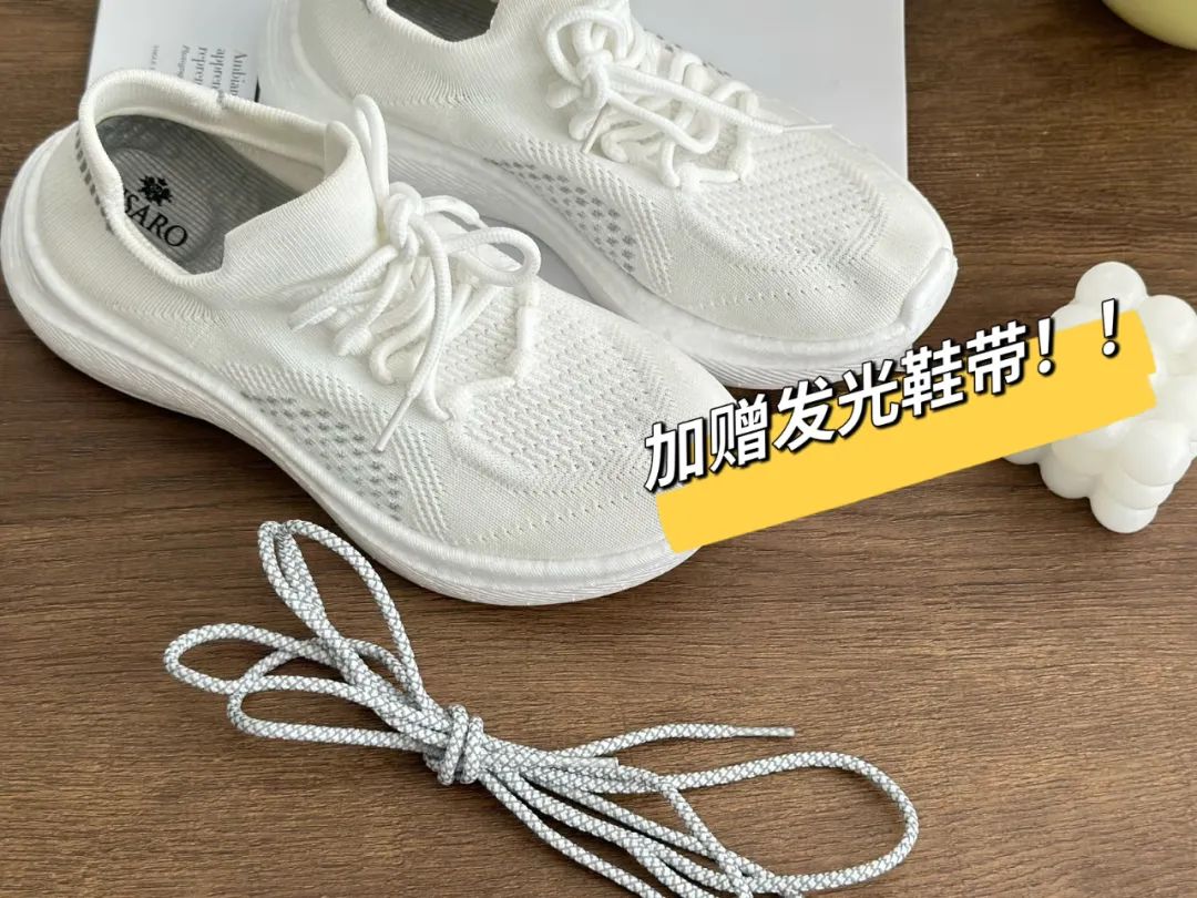 爆米花飞织鞋从鞋底到鞋面一体成型,一体的编织鞋面相比普通鞋子更柔软亲肤。
