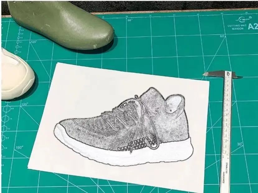为了让鞋像袜子一样舒适透气,生产工艺和过去完全不同。它模拟了袜子的生产过程,将鞋面整体采用3D飞织技术,冷粘而成。