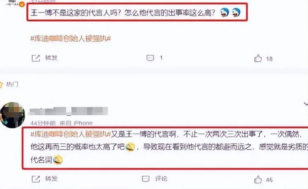 代言人王一博陷入风波:尽管库迪咖啡方面坚称创始人的这一风波对品牌毫无影响,但王一博却似乎被无辜波及,相关讨论区里网友的议论如潮水般汹涌,纷纷质疑为何王一博代言的品牌总是麻烦不断。