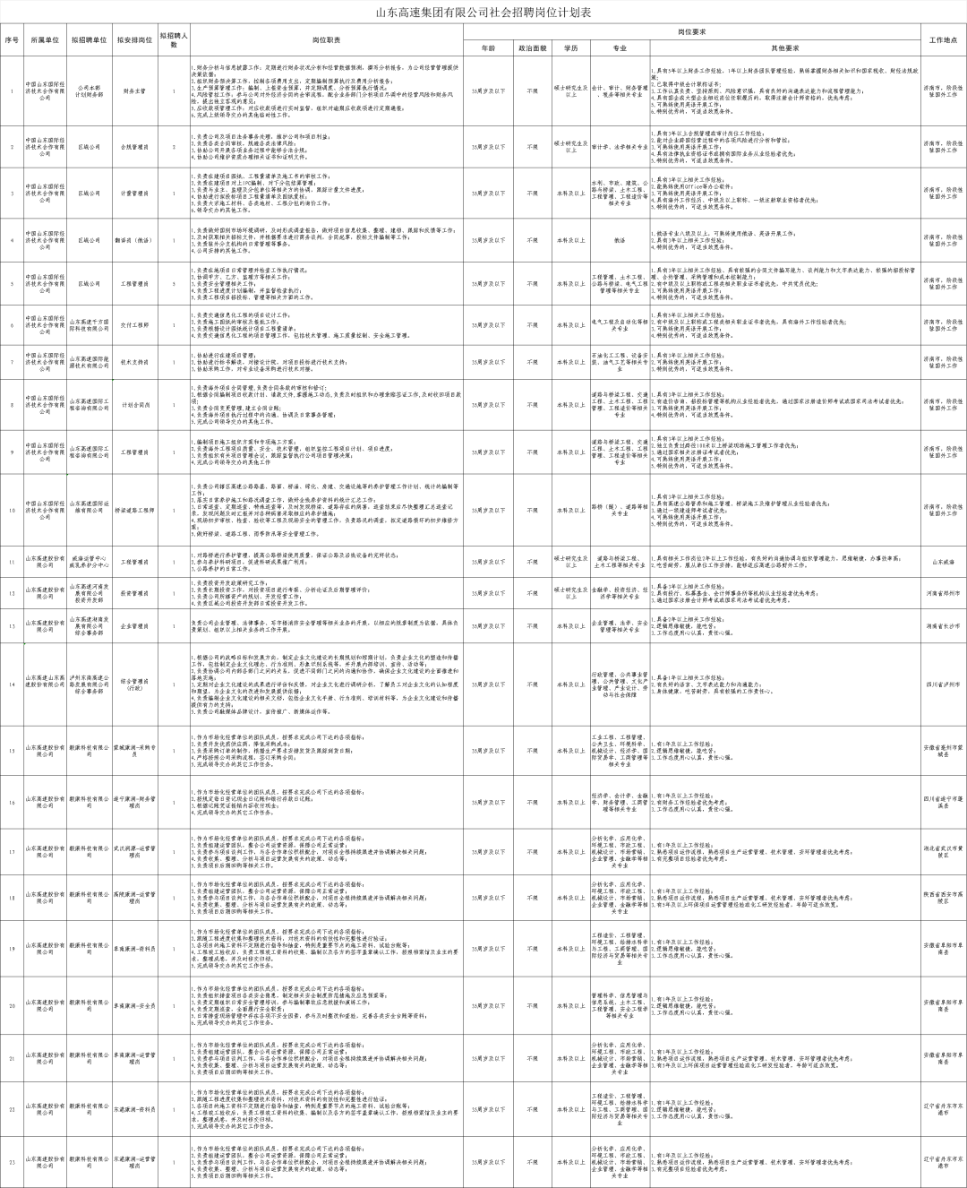 山东高速集团有限公司社会招聘岗位计划表.xlsx